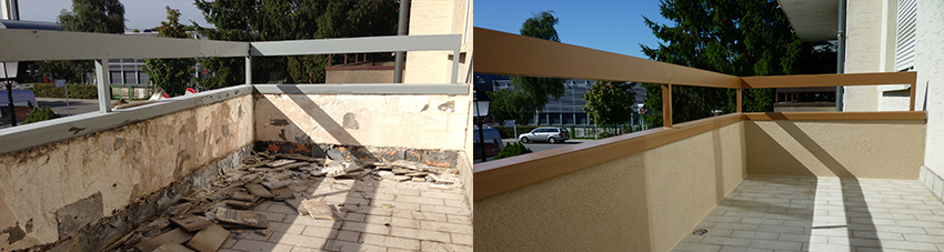 Da der Balkon der Witterung und der Temperaturschwankungen stark ausgeliefert ist, entstehen hier schnell Schäden wie zum Beispiel gesplitterte – gerissene Fliesen, Spannungsrisse oder Undichtigkeit, was zur Folge hat das die Feuchtigkeit bei nicht ausreichender Abdichtung in angrenzenden oder darunter liegenden Wohnräumen eindringen kann.